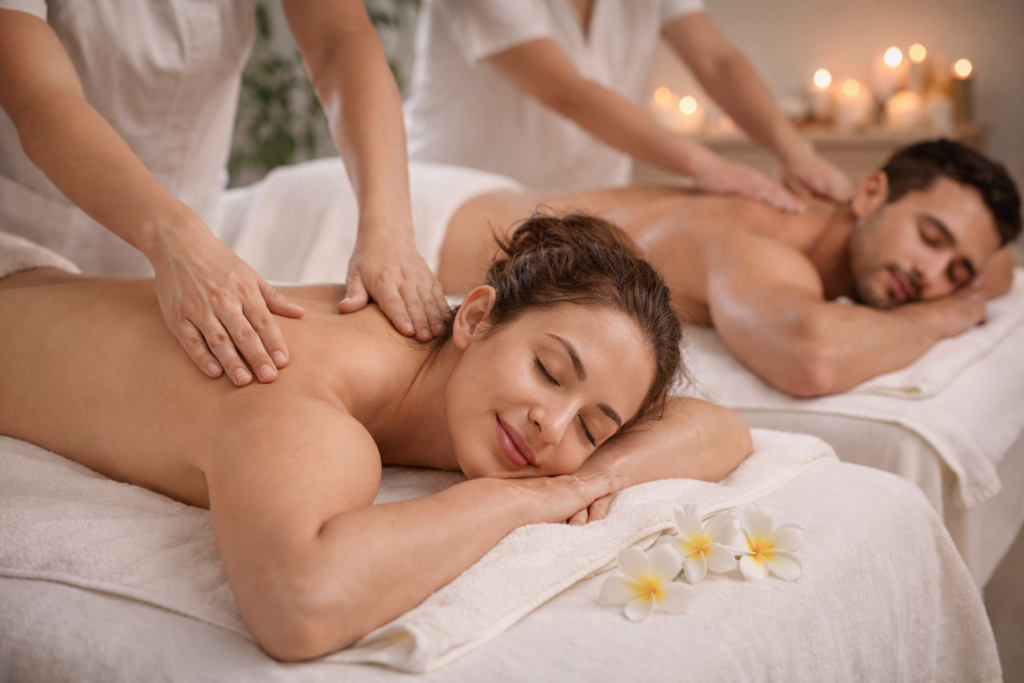 Couples Massage pampers you both, one after the other, so each of you enjoys personalized care without driving or stepping outside. As one partner unwinds on the table, the other gets to relax nearby—creating a shared atmosphere of calm and connection.